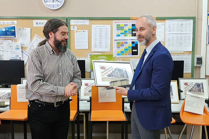 En el acto, que ha contado con la presencia de numerosos docentes de varias generaciones del IES Ataulfo Argenta y de centros educativos de la zona, al consejero se le ha hecho entrega de una reproducción de la fachada del edificio y un diploma conmemorativo.